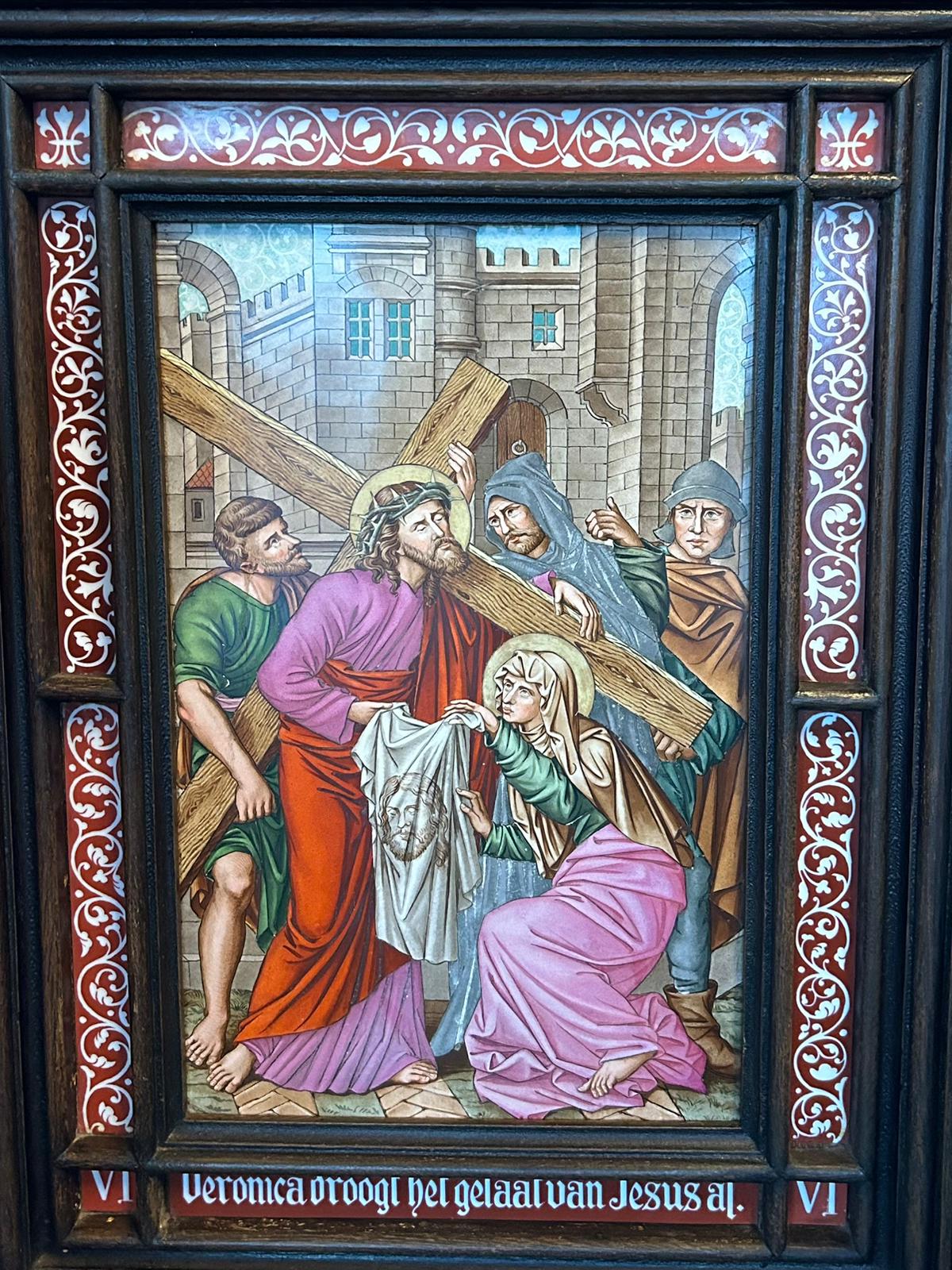 Afgelopen winter is er met een aantal vrijwilligers, hard gewerkt, aan het opknappen van de kruiswegstaties van de omgang. Het resultaat is heel mooi geworden. We zijn daarom extra blij dat we tijdens het paastriduüm, de kruisweg kunnen lopen langs deze 14 staties.